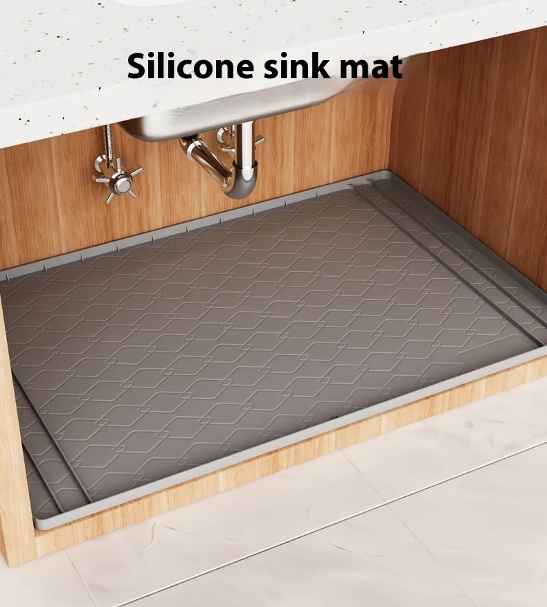 Made from high-quality, waterproof materials such as PVC, rubber, or silicone, the Under Sink Mat is designed to withstand the wear and tear of everyday use. Its flexible design allows it to easily fit in most sink cabinets, providing a non-slip surface that catches water, soap, or cleaning products before they can cause damage. The mat is also easy to clean and maintain, ensuring that it continues to protect your sink area while remaining neat and tidy.