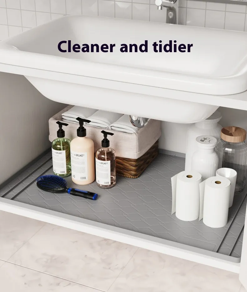 While it’s primarily designed to protect from water damage, the Under Sink Mat is also a great place to store cleaning supplies, sponges, and other household items. It keeps your sink area organized and prevents bottles and containers from tipping over, offering a functional solution to keep your space tidy.
