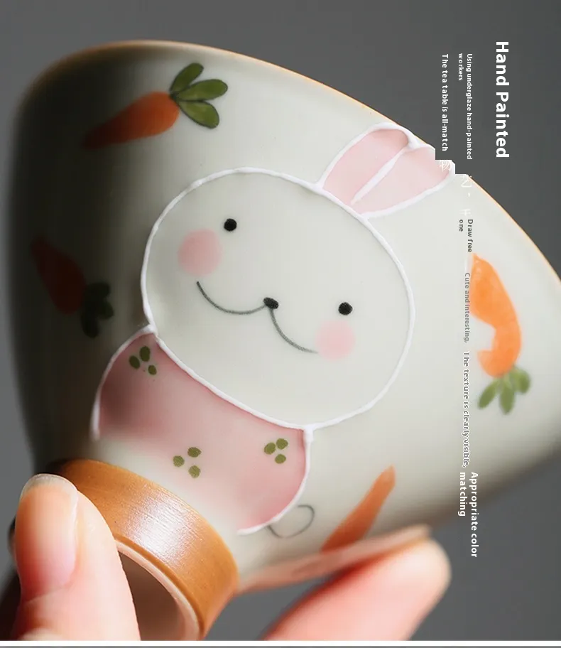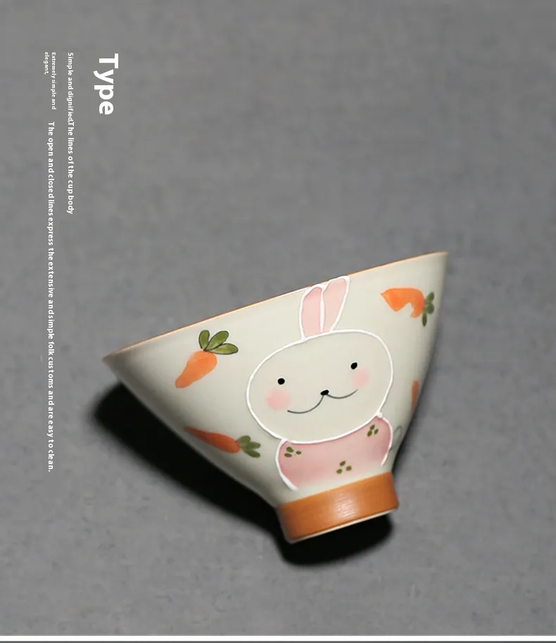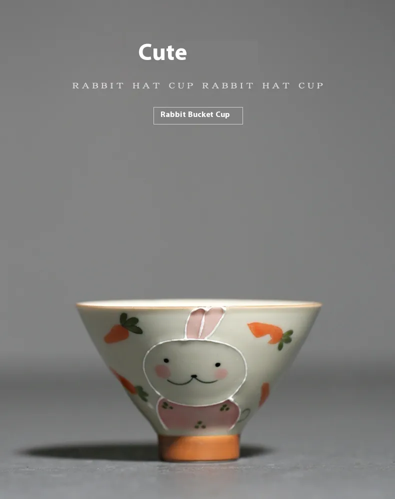 Underglaze Porcelain Hand-Painted Rabbit Bamboo-Hat Type Cup