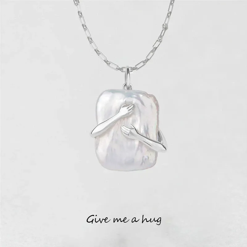 Unique Square Baroque Pearl Couple Pendant Necklace Valentines Day Lover Gift Party Jewelry