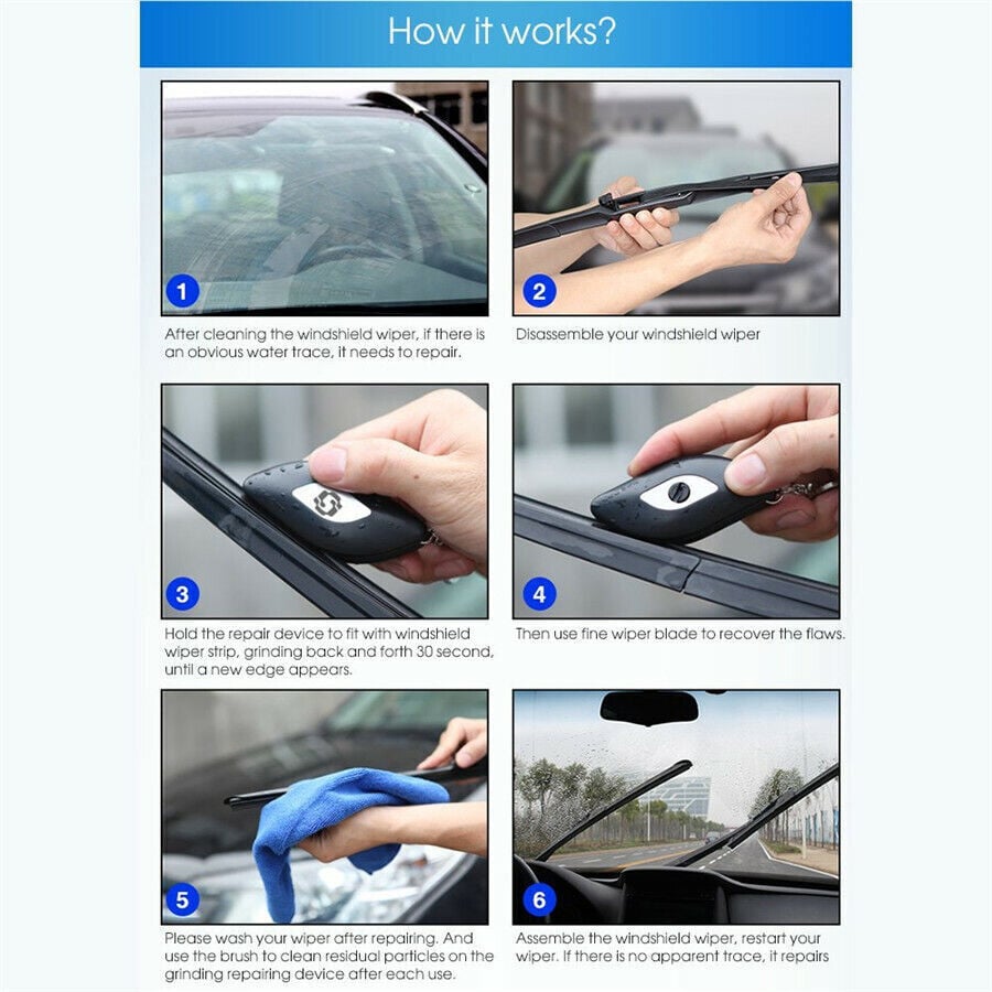 Safer and clean view: With this easy-to-use windshield wiper sharpener, you can have a clearer and safer view on the road whenever you want!.