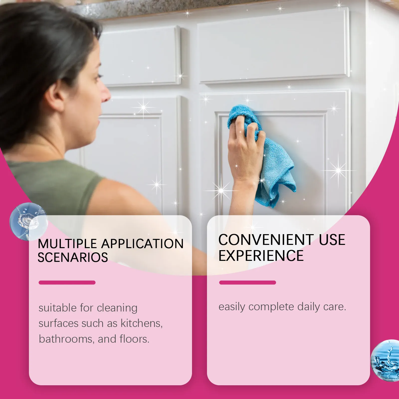 Multi-Surface Cleaner: Suitable for a wide variety of surfaces, including countertops, floors, appliances, tiles, glass,