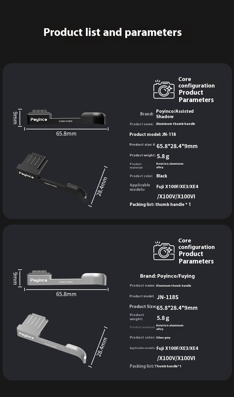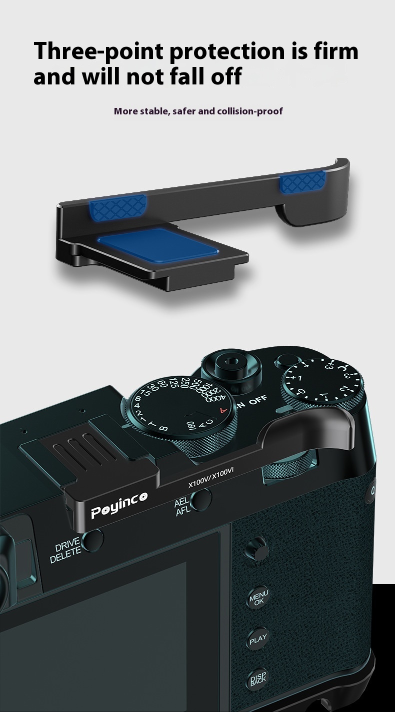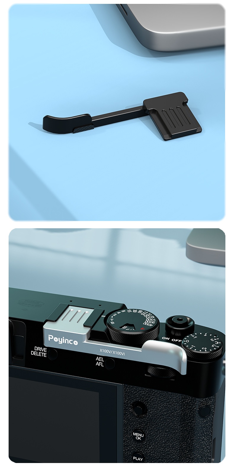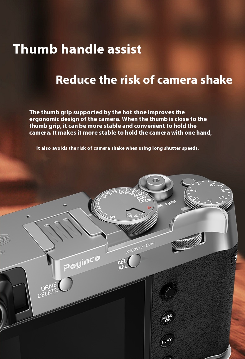 Enhance your camera handling with our Universal Metal Hot Shoe Thumb Handle. Designed for Camera X100V, X100VI, X100F, XE3, and XE4, this