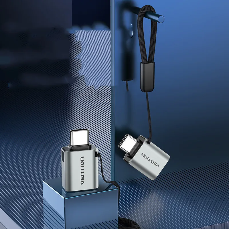 USB 3.0C Male To A Female OTG Adapter Aluminum Alloy Grey With Lanyard