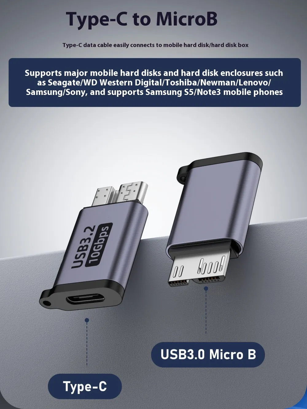 Applicable models: Micro B interface old mobile hard drives, hard drive cases, mobile phones, etc