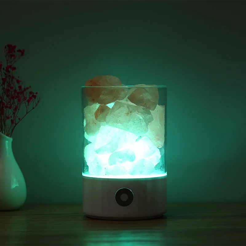 Using a natural crystal salt ore. After the salt lamp is lit, a large amount of negative ions can be quickly released through heating, which can effectively improve the air quality and purify the air.Â