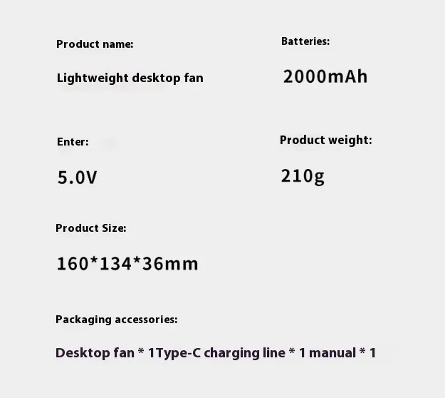 Fan, charging cable, instruction manualÂ