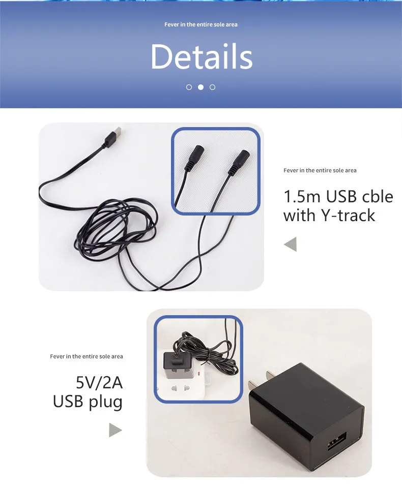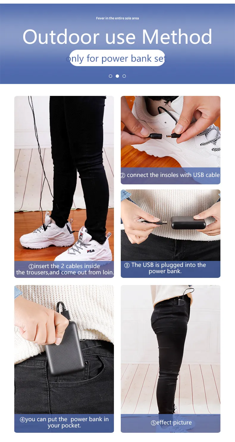 - USB Powered: Use a power bank or any USB port to power the insoles.