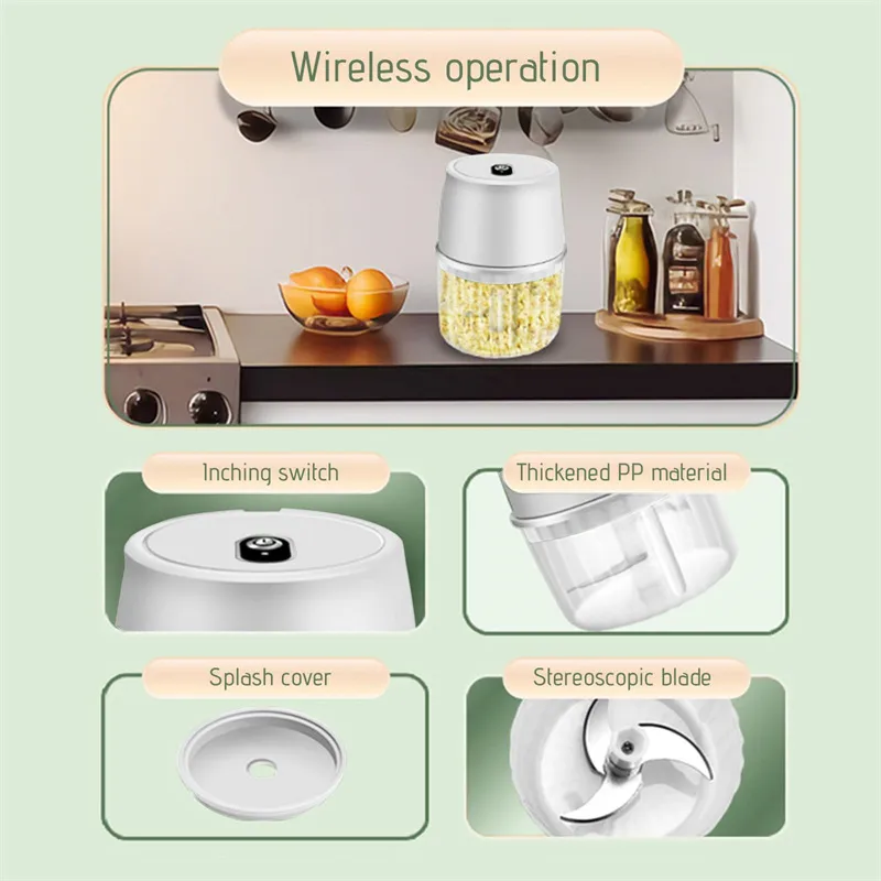 USB Rechargeable Electric Garlic Press Portable Wireless Food Chopper Mini Complementary Food Mixer Kitchen Gadgets
