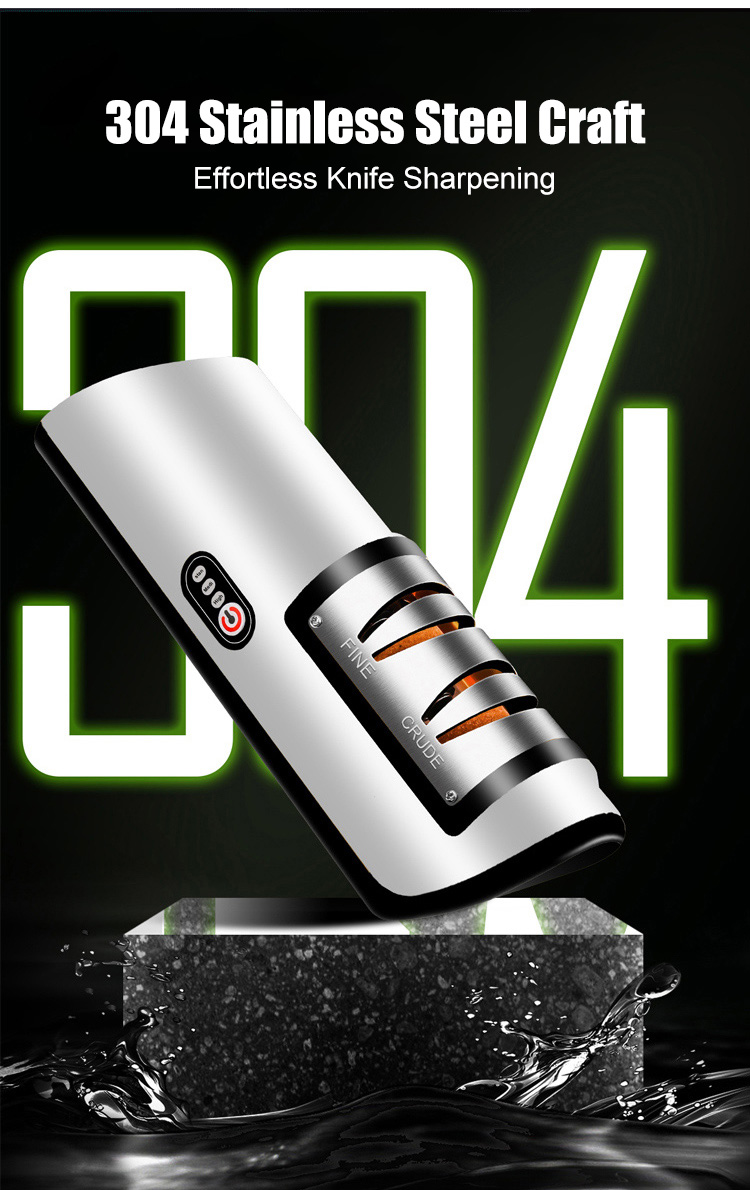 USB Rechargeable Electric Knife Sharpener with Automatic Adjustability for Knives, Scissors
