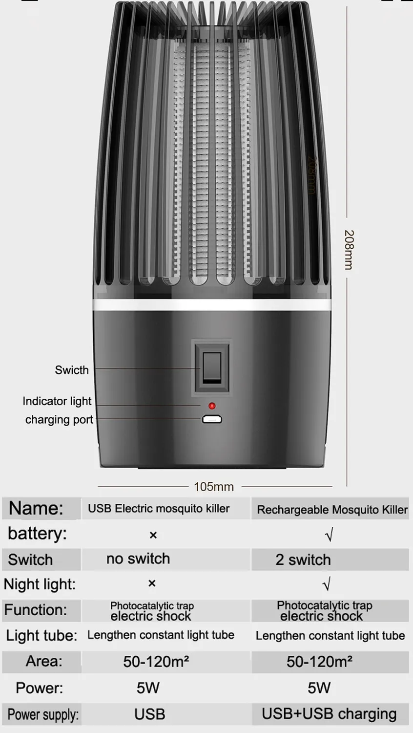 Perfect for use in bedrooms, living rooms, patios, or while enjoying the outdoors, the USB Rechargeable Moustique Tueur Lampe is a must-have gadget for anyone looking to enjoy mosquito-free spaces without the use of chemicals or sprays.