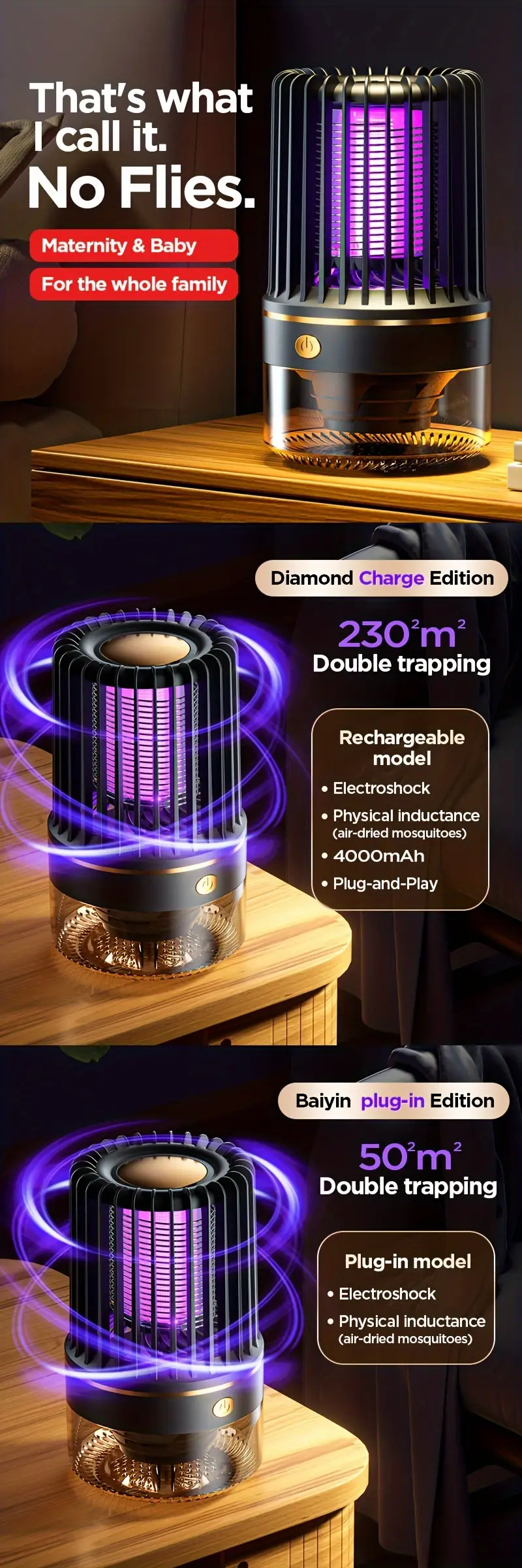 USB Rechargeable Silent Mosquito Killer Lamp
