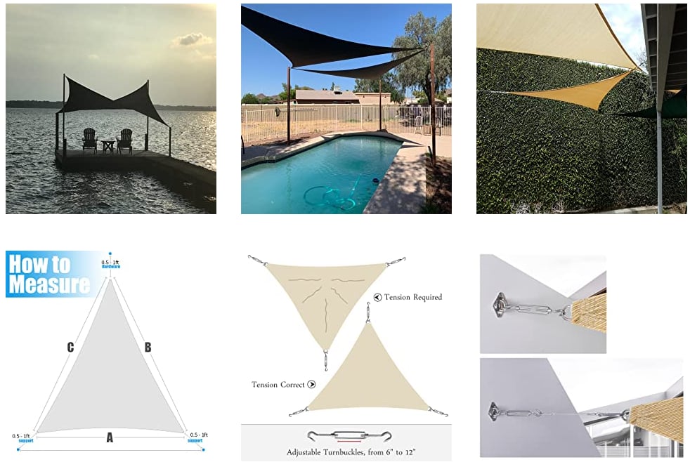 - Match the sun shade sail of different sizes or colors, giving you a larger and more beautiful shading area.