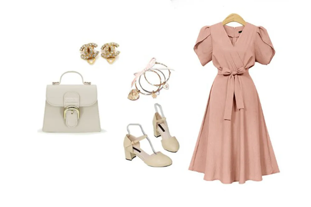 Timeless Appeal: With its classic V-neck and waist design, this dress is an enduring wardrobe staple that will never go out