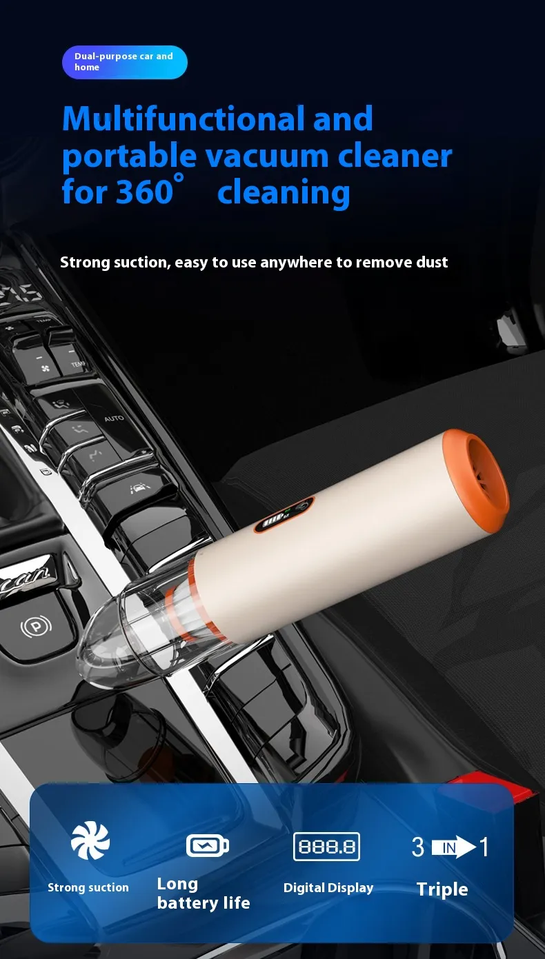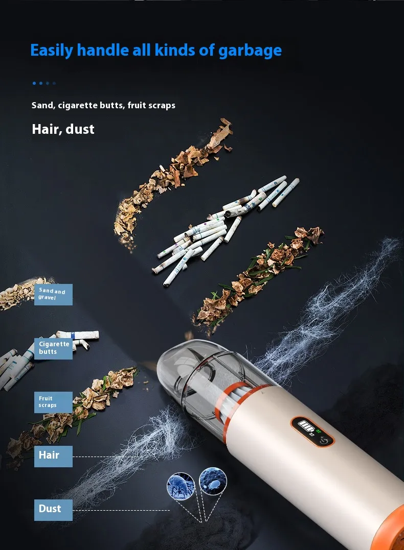 The V22S Wireless Charging Portable Handheld Vacuum Cleaner is the ultimate cleaning companion for your home and vehicle. With powerful suction, a wet and dry cleaning system, and convenient wireless charging, this vacuum combines efficiency, portability, and modern design. Whether you're tackling crumbs, spills, or deep-seated dirt, the V22S makes cleaning effortless and efficient.