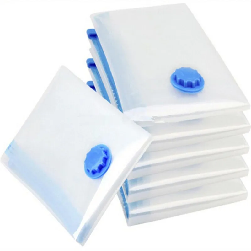 Attach your vacuum cleaner hose to the bag valve, remove the air, and seal. Some bags even include hand pumps for use when travelling.