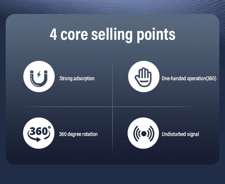 - High-Quality Materials: This Smart magnetic suction phone mount crafted from durable aluminum alloy, combines robust strength with sleek elegance. Engineered for long-lasting performance, its sturdy construction ensures your phone stays secure