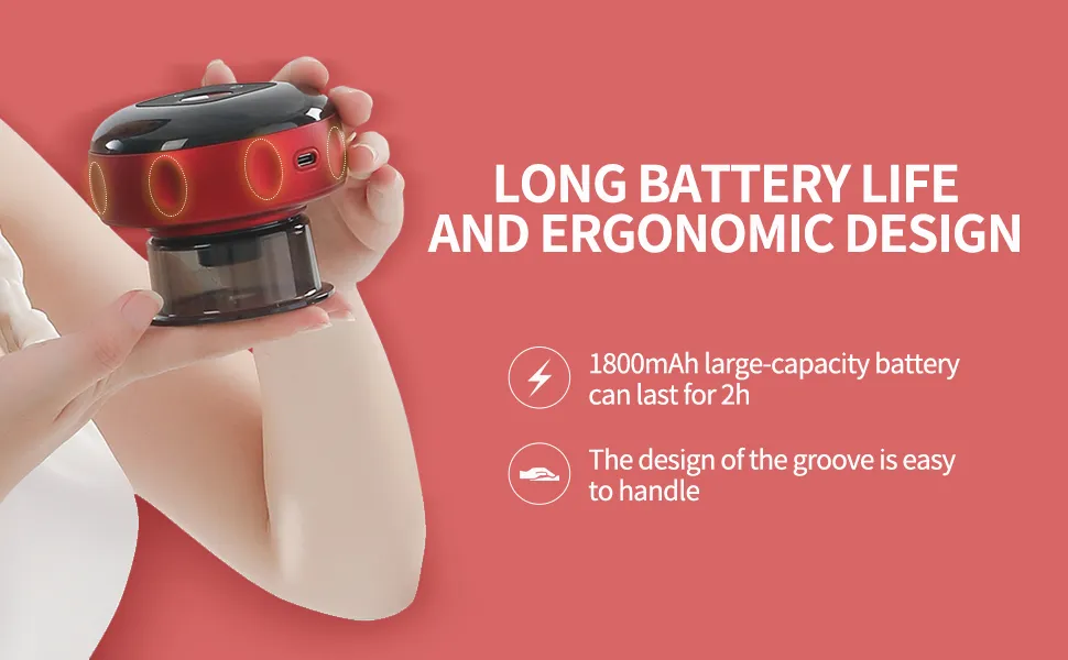 The device is designed to be used on various body areas, including the thighs, arms, abdomen, and back. Whether used for general relaxation, cellulite treatment, or muscle soreness relief, it helps support overall body wellness by improving blood flow and reducing inflammation in targeted areas.