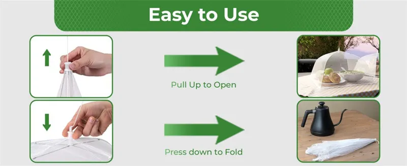 Simple to Use: Easily place over food or table items to protect instantly; collapses flat for storage when not in use.