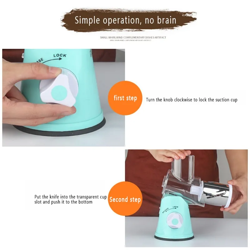 The unique round mandoline design provides greater control and efficiency, allowing you to spin and slice vegetables smoothly and evenly.