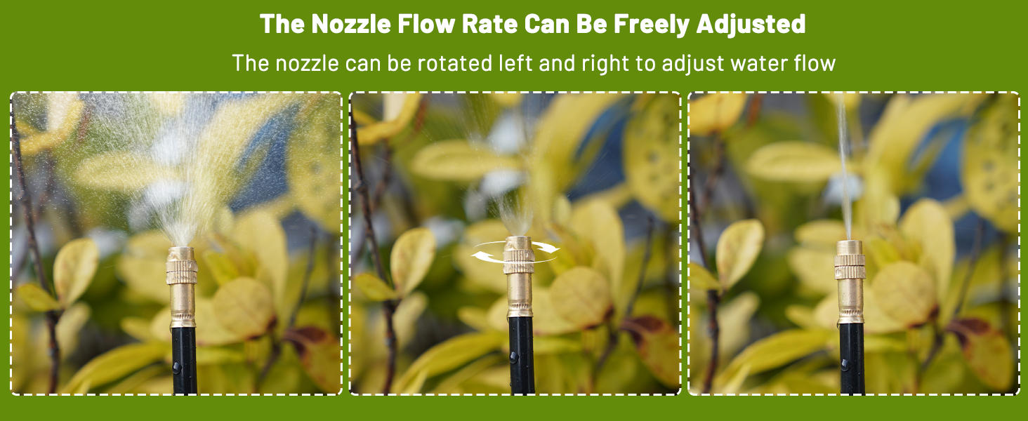 - 360° GARDEN WATERING SYSTEM: Adjustable detachable washable nozzle, the nozzle is made of solid copper instead of plastic, ensuring a durable and long-lasting product. The built-in metal hose of the nozzle can be bent and fixed at any 360 ° angle ,It is convenient to adjust the place where spray is needed and specify the direction