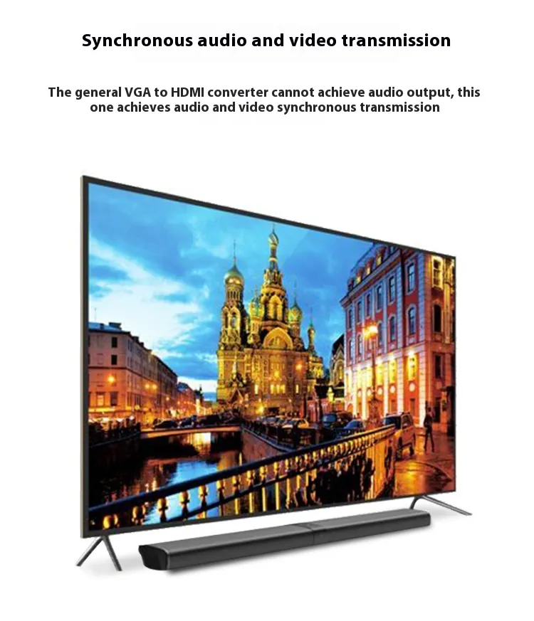 Unlike traditional VGA cables that transmit only video, this adapter includes an integrated 3.5mm audio cable, ensuring synchronized sound and visuals.