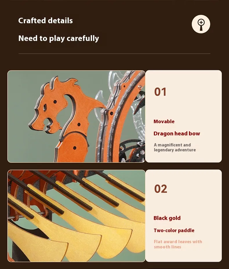 Once assembled, the dragon boat makes a unique decorative piece or interactive toy.