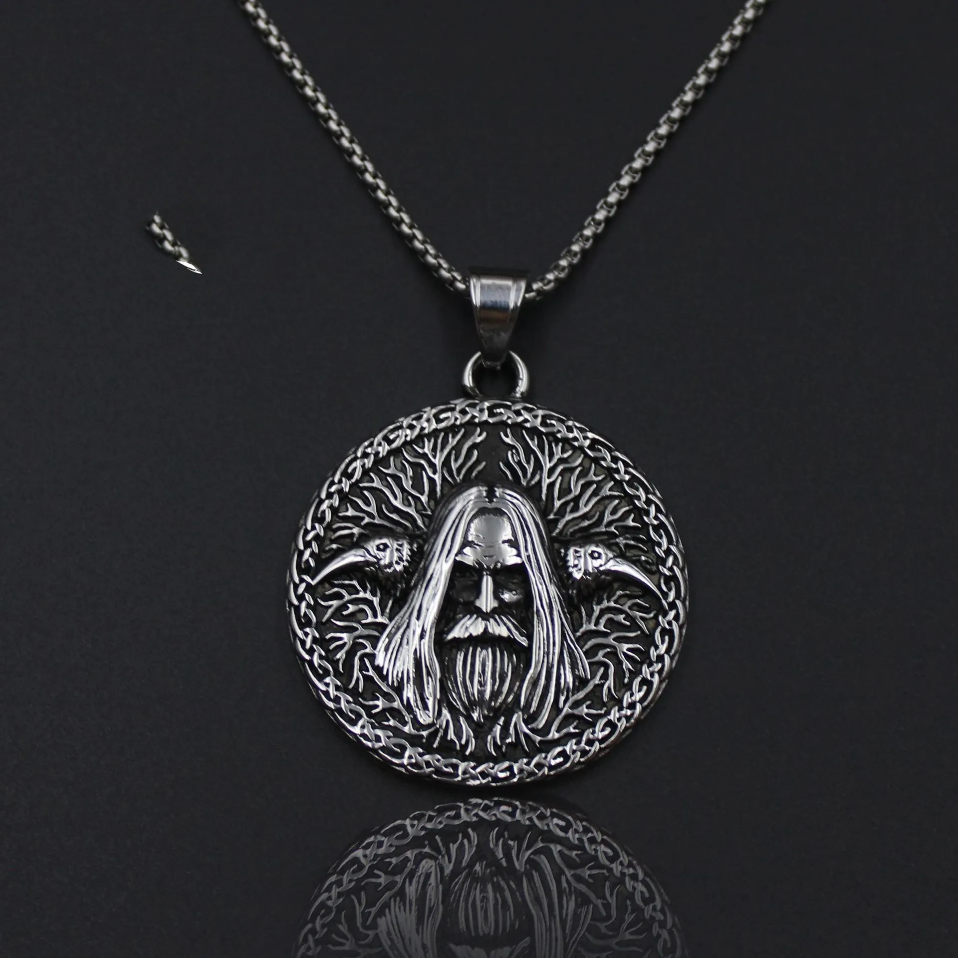 Viking Old Head Statue Pendant Men's Titanium Steel Necklace