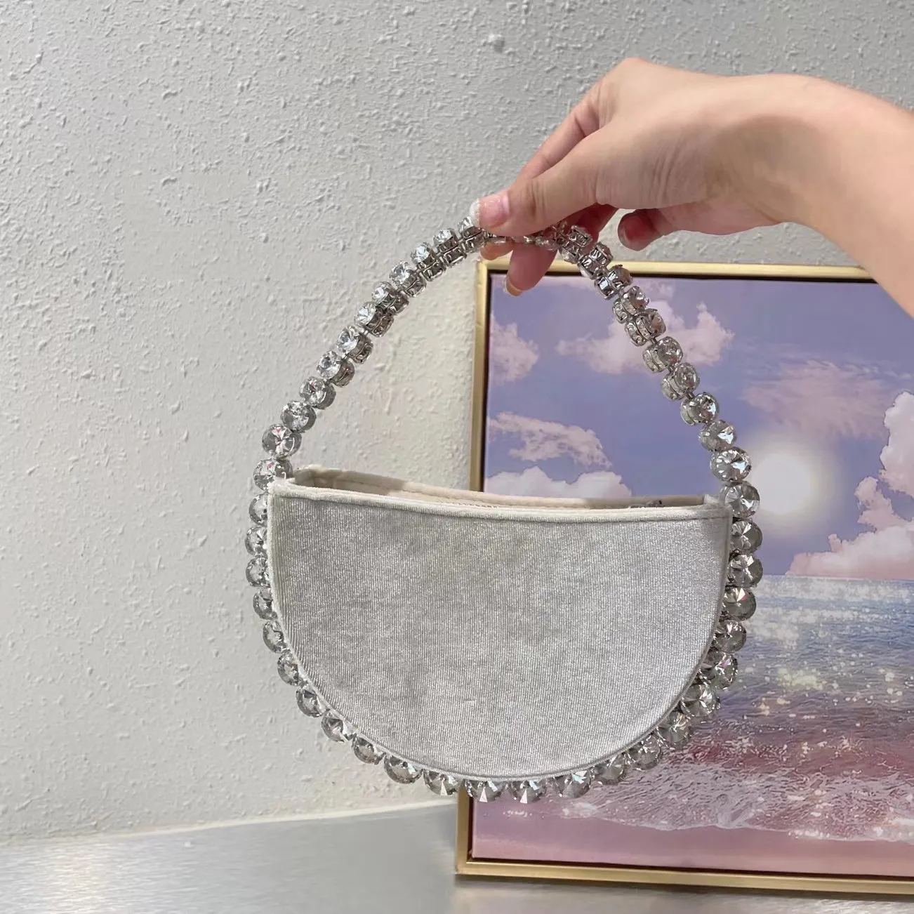 Vintage Banquet Rhinestone Semicircle Bag Diamond Velvet Clutch