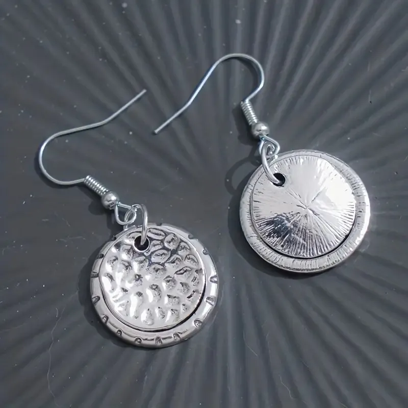 - Textured finish: The textured surface of the discs adds depth and complexity to the design, making the earrings both subtle and eye-catching.