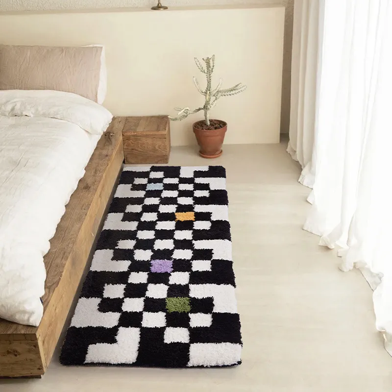 Vintage Checkerboard Bedside Bedroom Bedside Rug