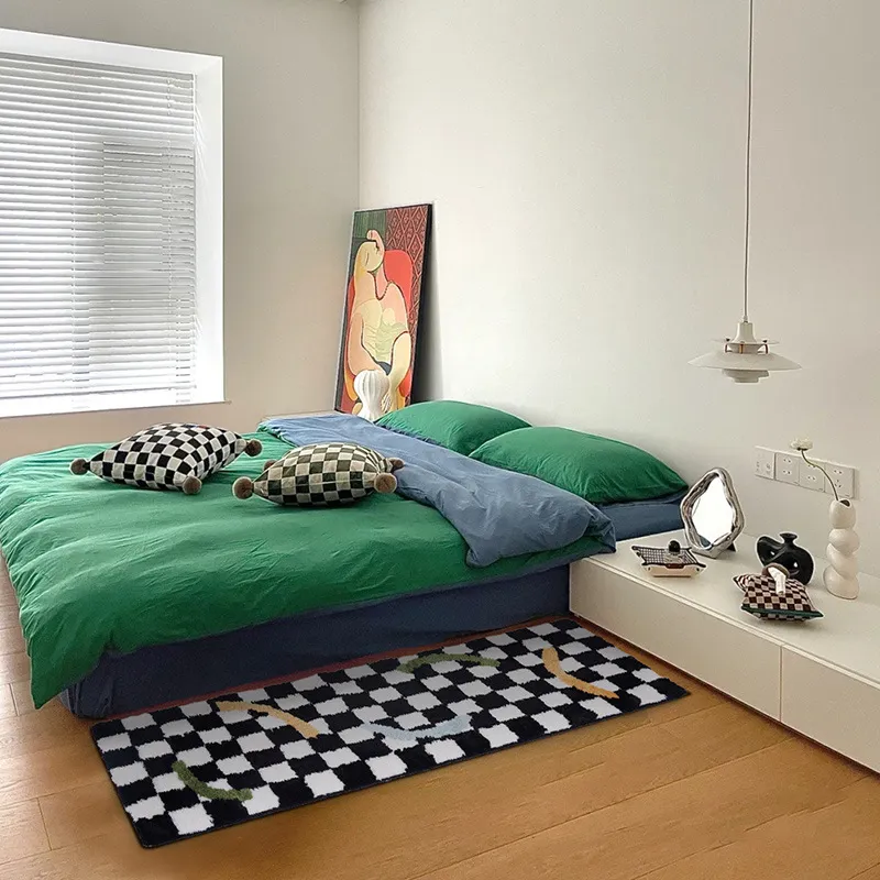Vintage Checkerboard Bedside Bedroom Bedside Rug