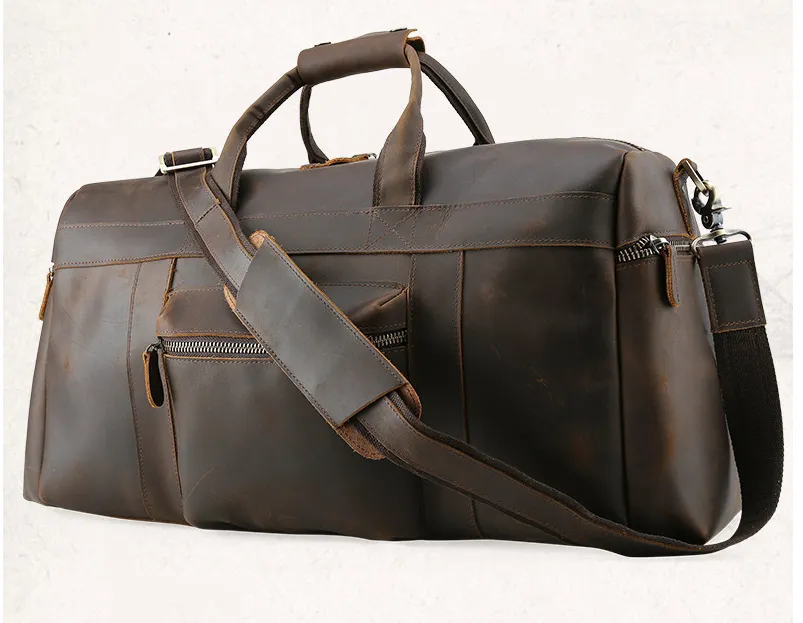 both casual and formal occasions. Elevate your travel experience with the Vintage Crazy Horse Leather Men's Travel Large Capacity Tote,