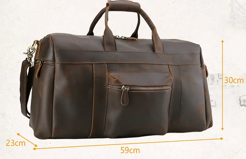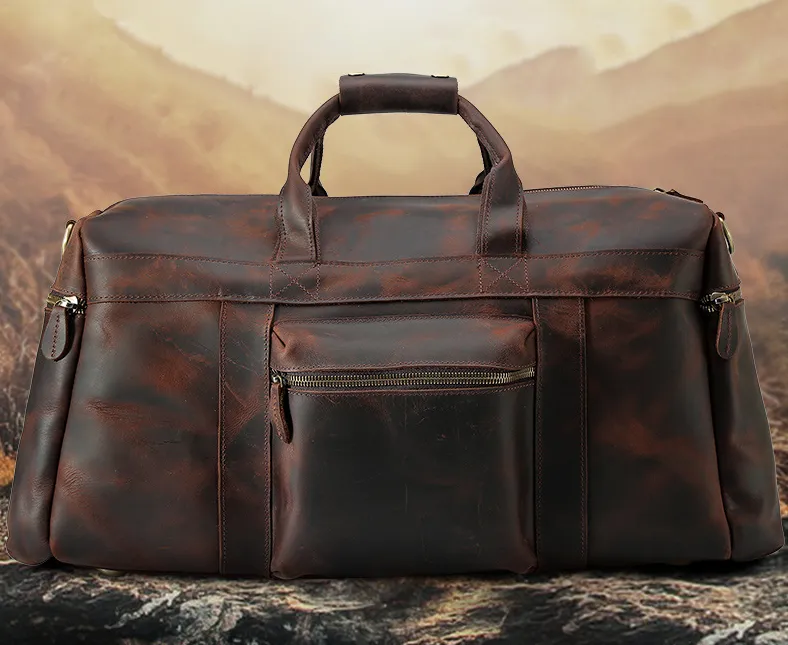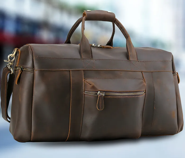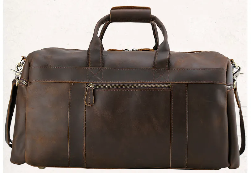 both casual and formal occasions. Elevate your travel experience with the Vintage Crazy Horse Leather Men's Travel Large Capacity Tote,
