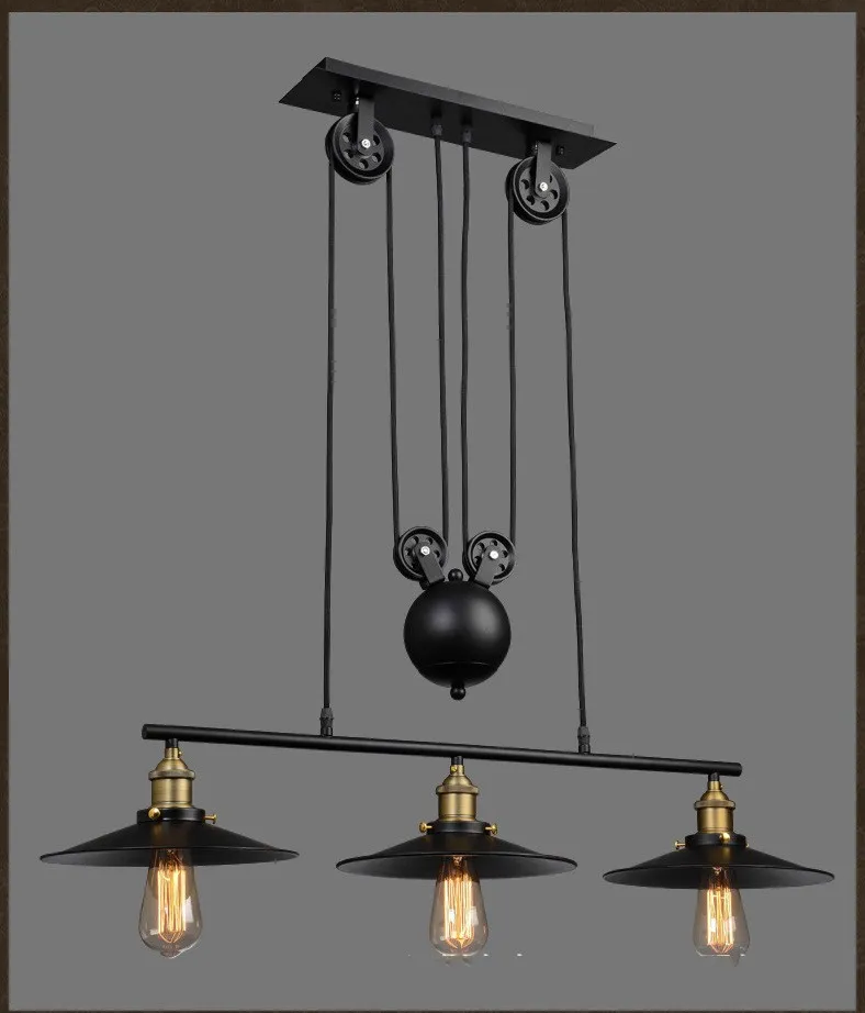 The Vintage Iron Lifting Pulley Pendant Lamp is a stylish and functional lighting fixture that elevates the ambiance of any room. Its unique design and warm illumination make it an essential addition to your home decor.