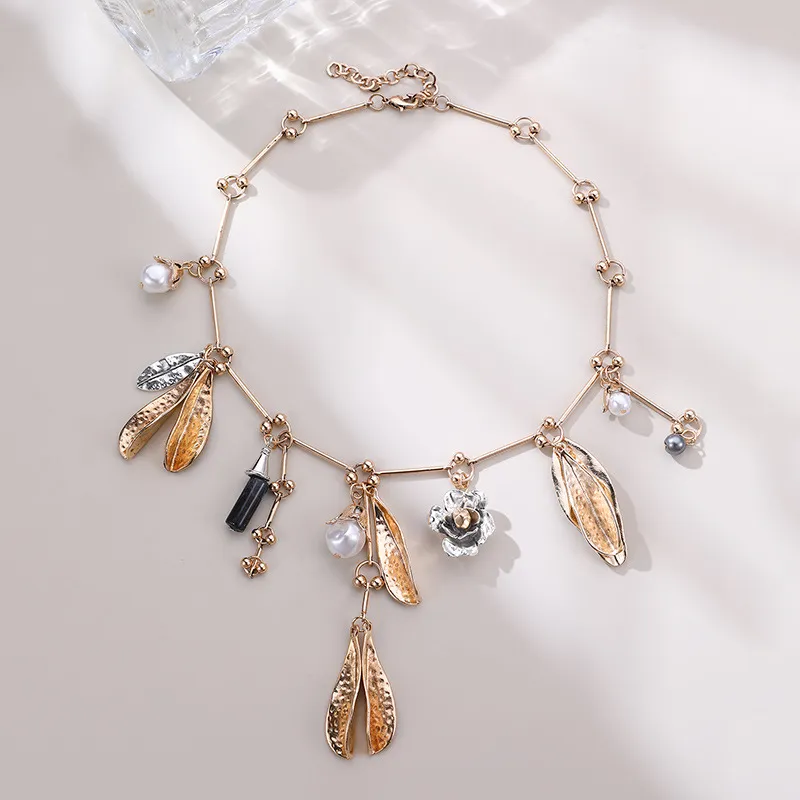 Vintage Pearl Leaves Flower Multi-pendant Necklace