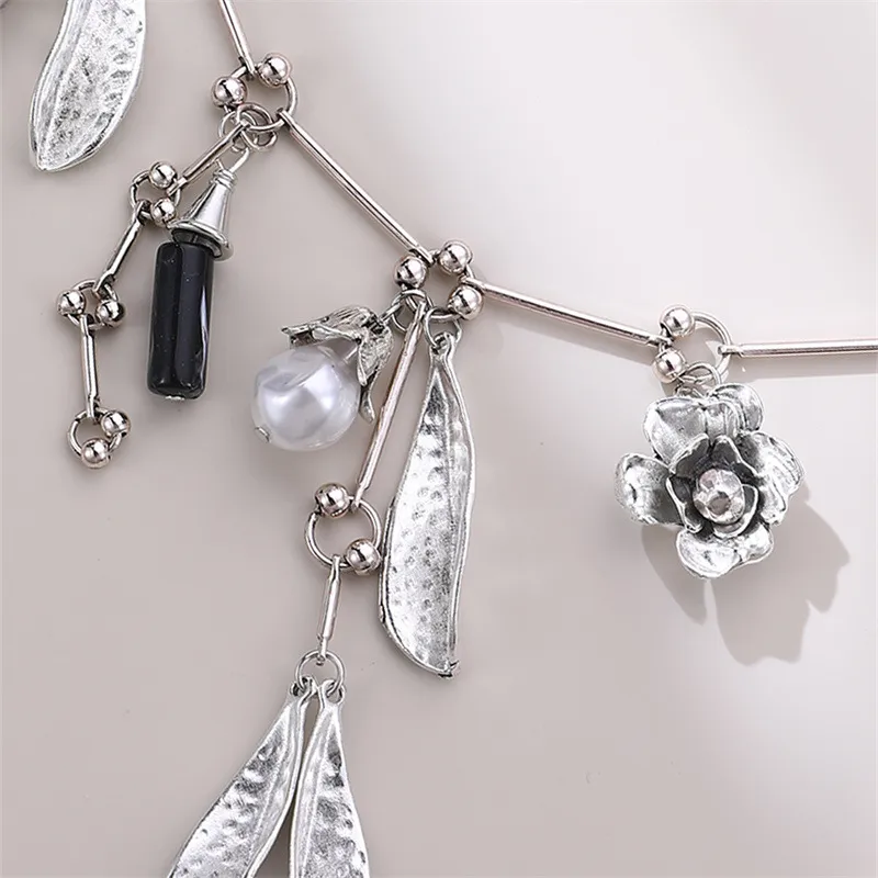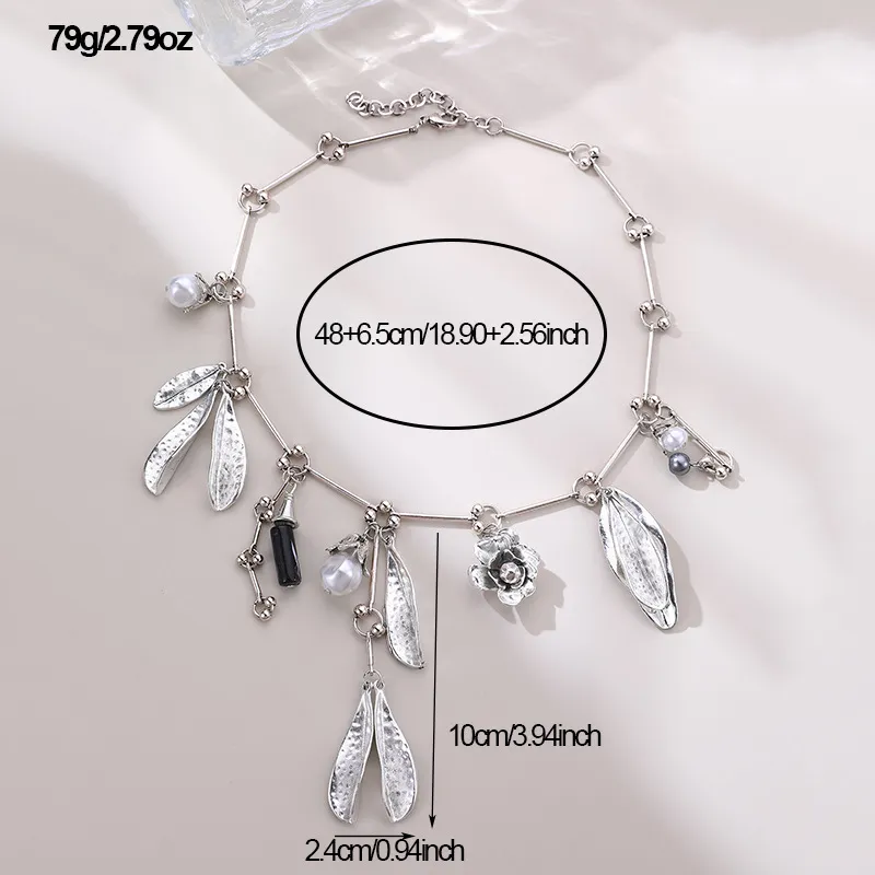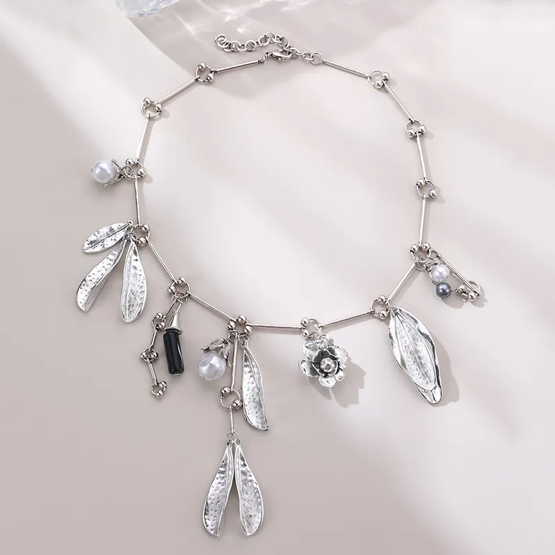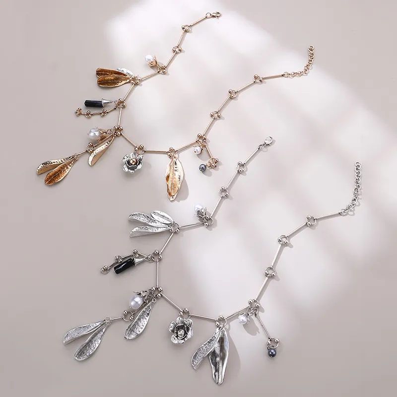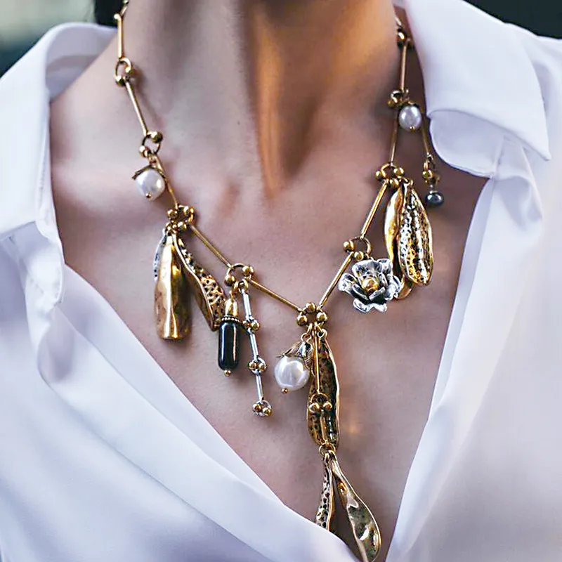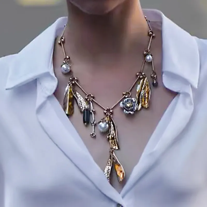 Vintage Pearl Leaves Flower Multi-pendant Necklace