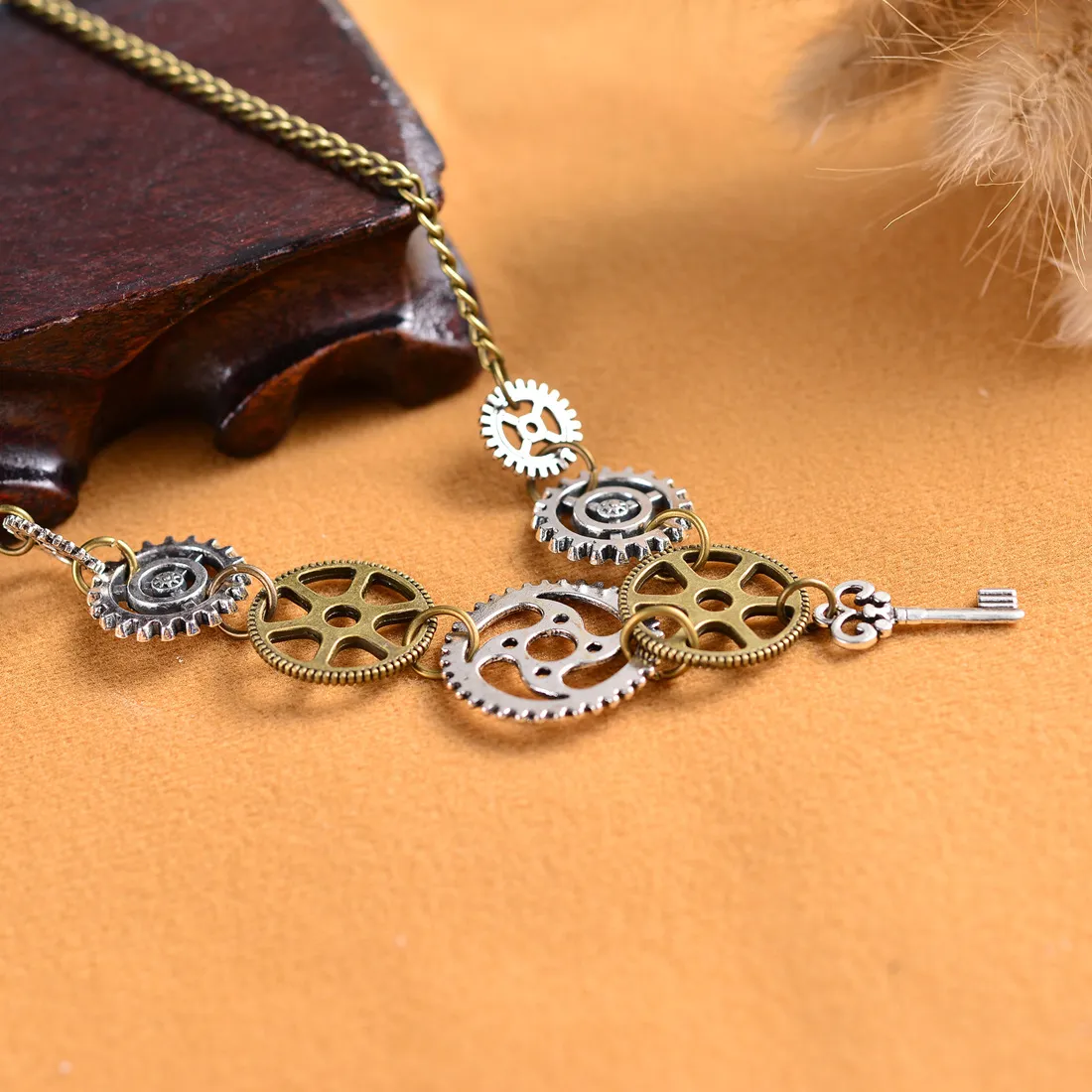 Vintage Steampunk Gear Combination Pendant Necklace