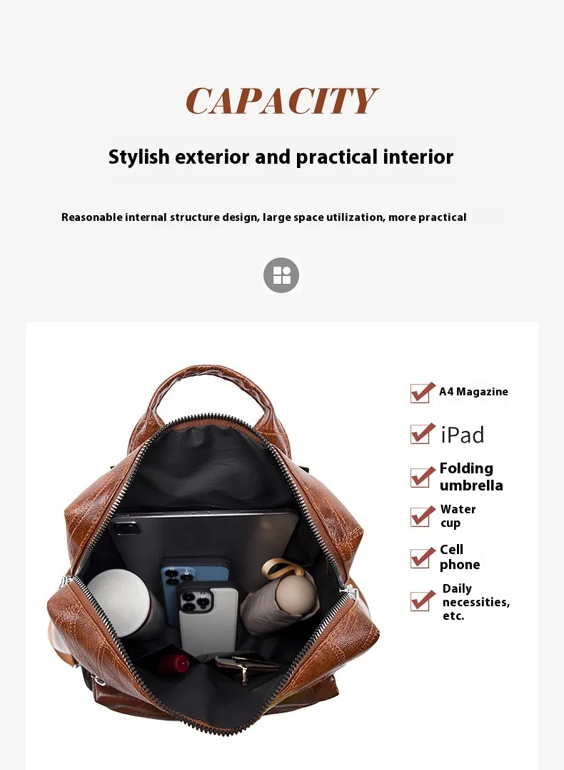 Constructed from premium materials, this backpack is designed to withstand daily use. The PU leather material not only provides a vintage look but is also durable and water-resistant, offering protection against light rain and spills. The sturdy zippers and reinforced stitching ensure that the backpack will last through the wear and tear of everyday life, while the adjustable shoulder straps offer comfort and support, even when the bag is fully loaded.
