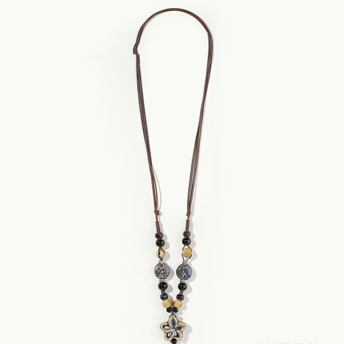 Vintage Sweater Chain Women's Long Flower Ceramic Necklace