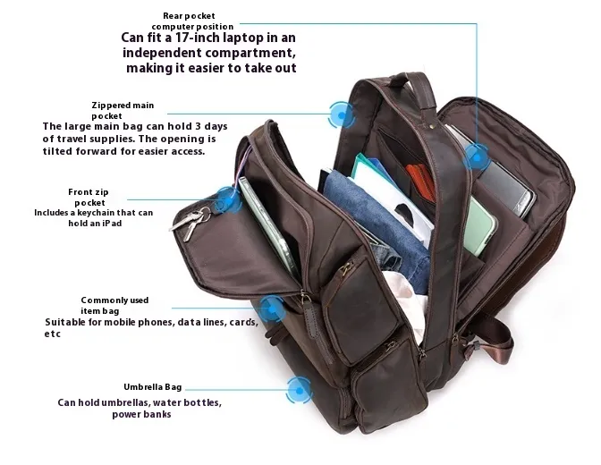 the Vintage Travel Genuine Leather Backpack, combining classic aesthetics with modern functionality.