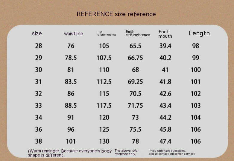 Size: 28 [recommend 45.00kg-52.50kg],29 [recommend 55.00kg-57.50kg],30 [recommend 6200kg-62.50kg],31 [recommend 65.00kg-67.50kg],32
