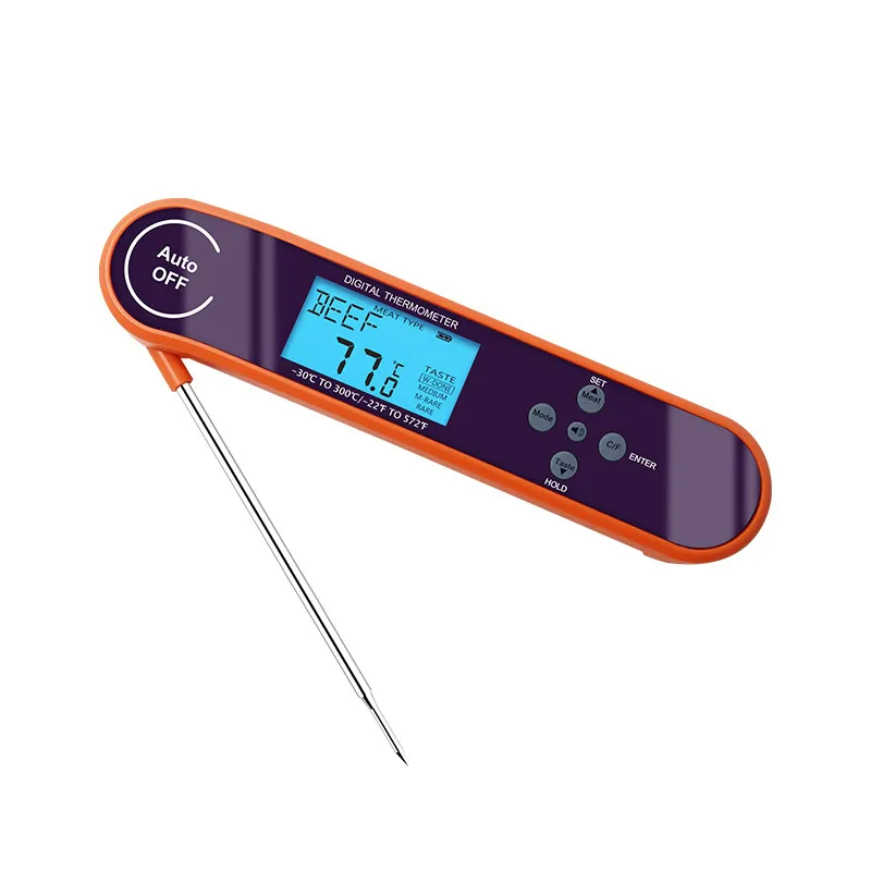 - Open the foldable probe and insert it into the thickest part of the food.