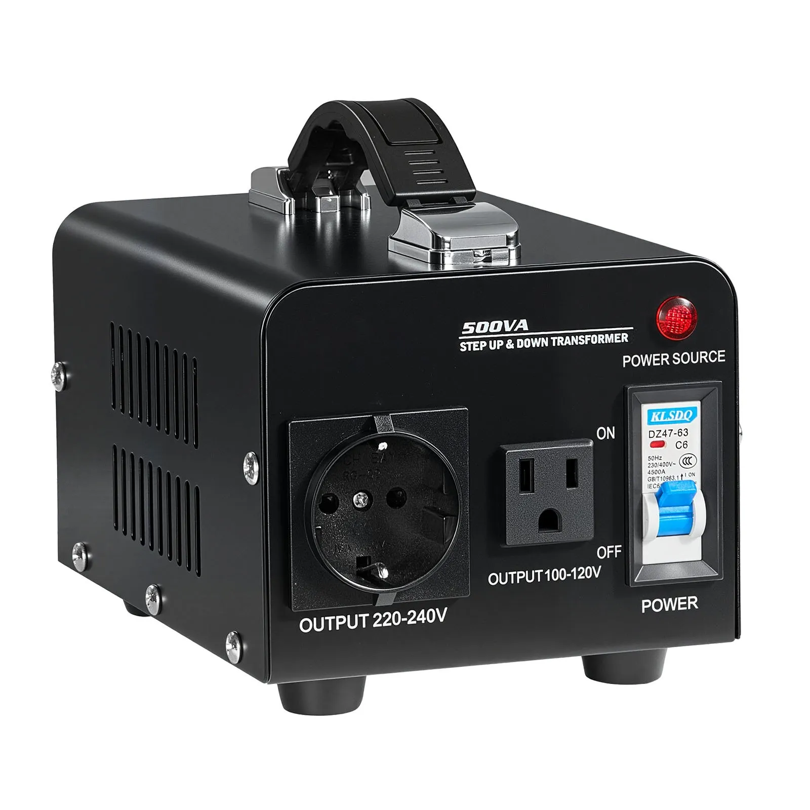 500VA Voltage Converter Transformer: Includes two AC outputs—one standard US output socket and one EU output socket. For optimal