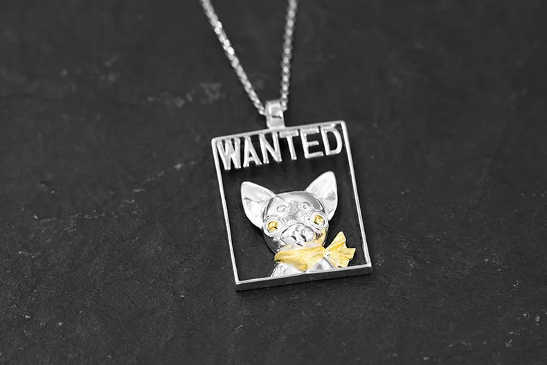 The "Wanted" sign adds a unique twist to the pendant. It’s a fun way to personalize the piece, making it more than just a simple dog pendant. The sign makes the pendant feel like a wanted poster, adding an element of mystery and humor.