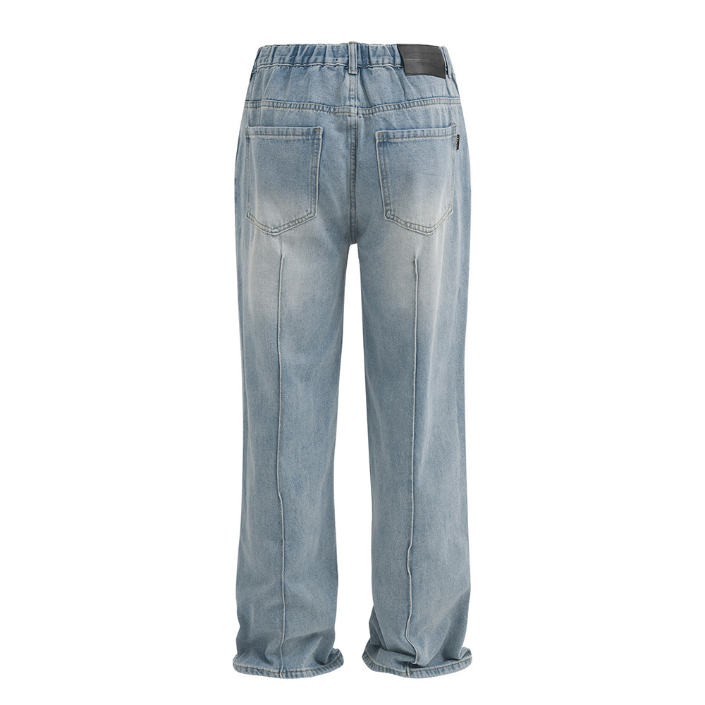 Washed And Faded Denim Trousers Men's Fashion