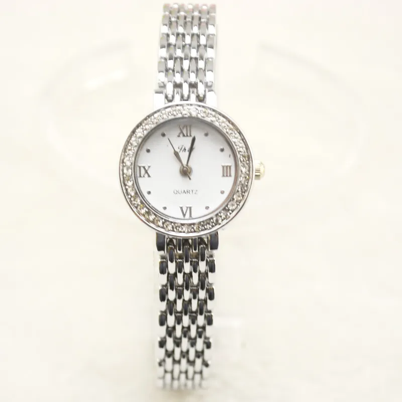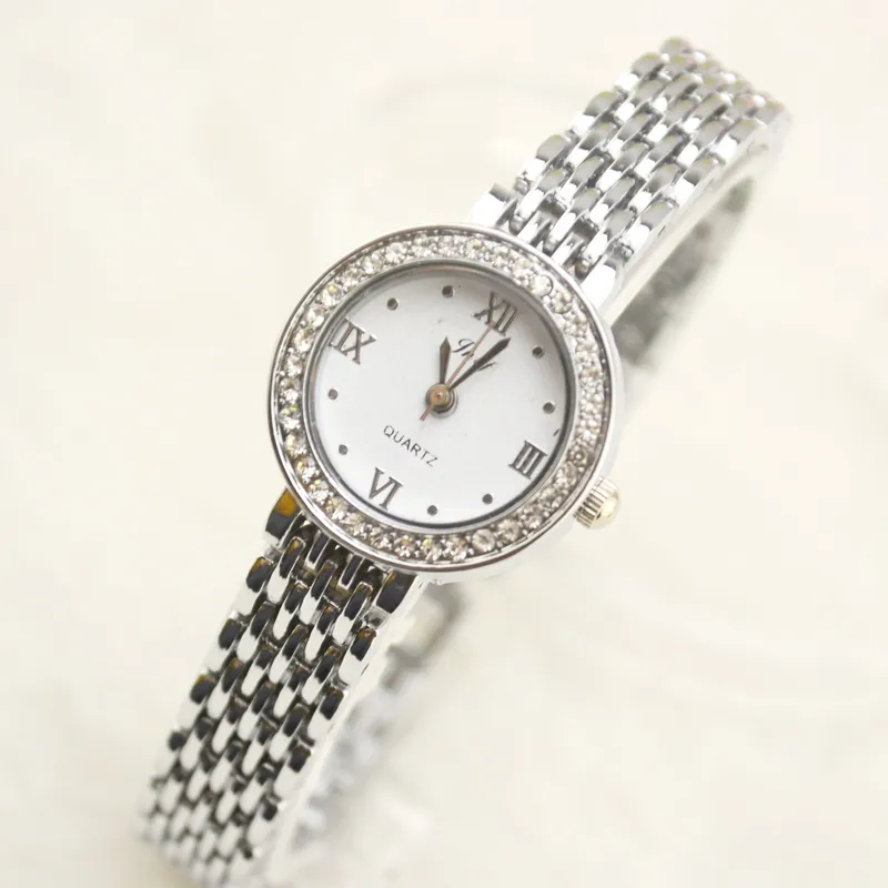 The watch face and bezel are embellished with high-quality rhinestones that catch the light beautifully, creating a luxurious and eye-catching sparkle.