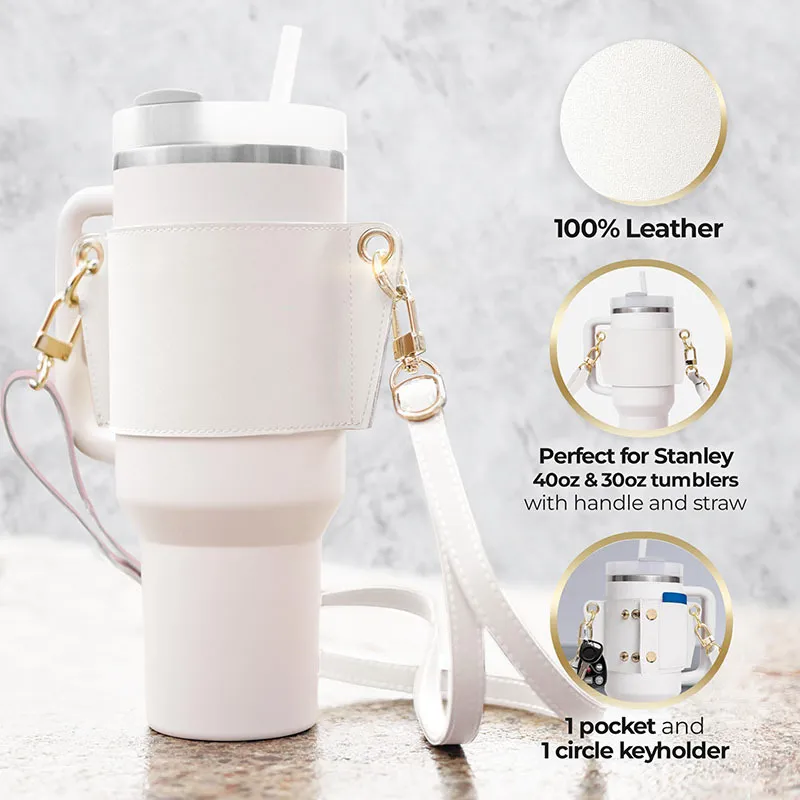 Water Bottle Handle Shoulder Strap For 30-40oz Bottles PU Leather Tumbler Handle Water Bottle Sling Accessory