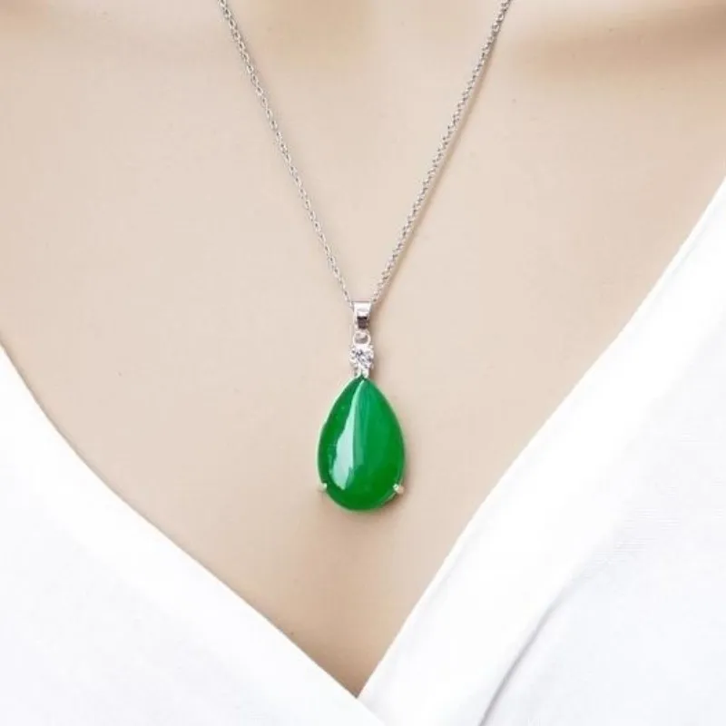 Water Drop Pendant Necklace Emerald Inlaid Ice Jade Stone: Elegance and Serenity in One Beautiful Piece