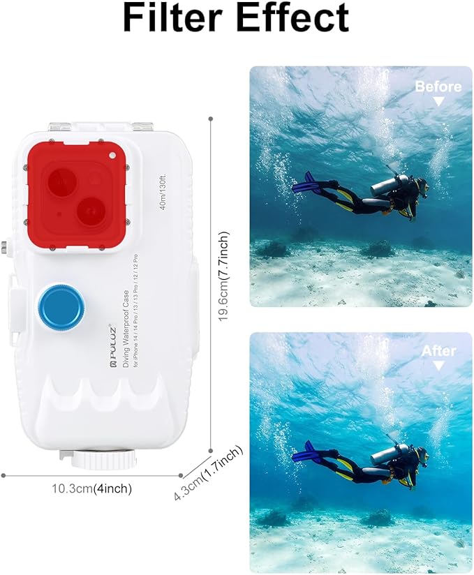 - 【Deepest dive depth】The dive case is made of n durable and corrosion resistant material, waterproof and sealed with one-way valve pumping technology to make the case more airtight and prevent water from seeping into the waterproof case. You can use your iPhone underwater at up to 40M/131FT with confidence and take clear images.